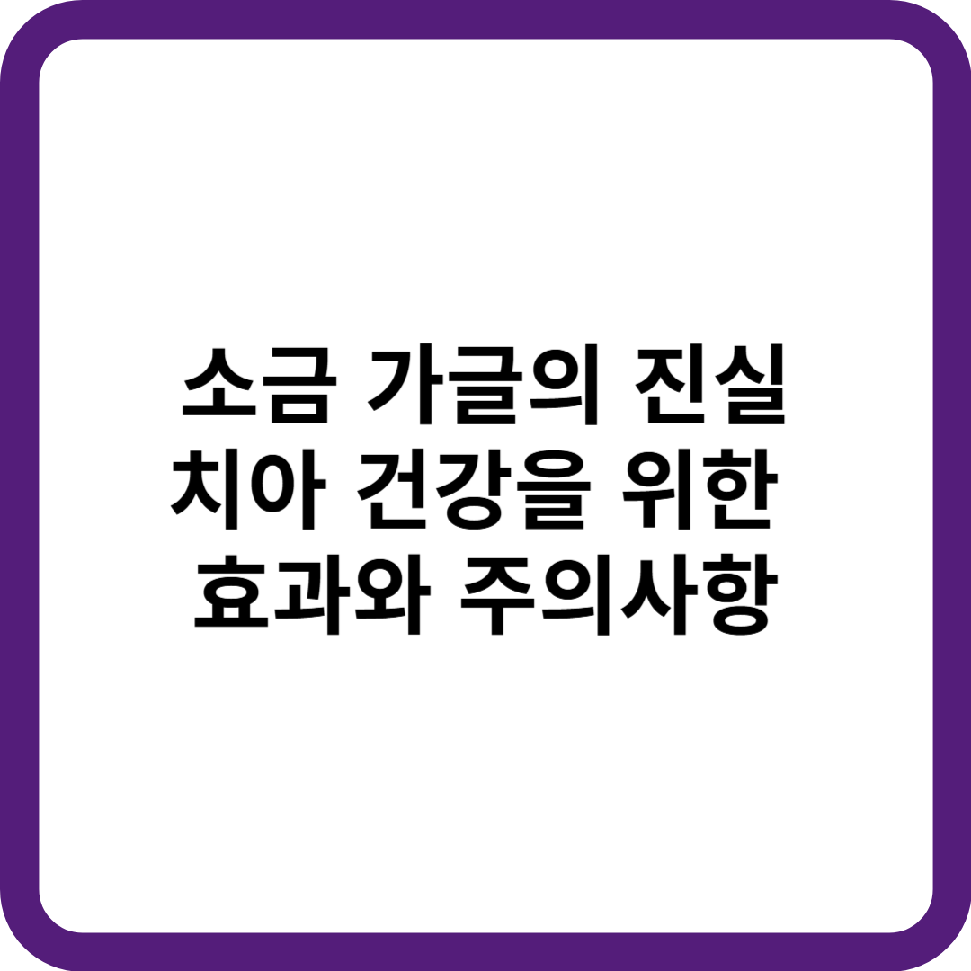 소금 가글은 오래된 민간요법 중 하나로, 많은 사람들이 치아와 잇몸 건강을 유지하기 위해 사용하고 있습니다. 그러나 이 방법의 효과와 안전성에 대한 과학적 근거와 주의사항은 무엇일까요? 이 글에서는 소금 가글의 진실을 파헤쳐보고, 그 효과와 주의사항을 다각도로 살펴보겠습니다.